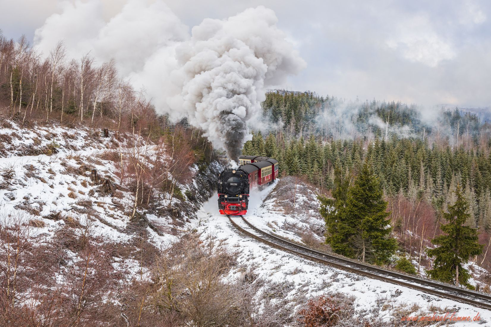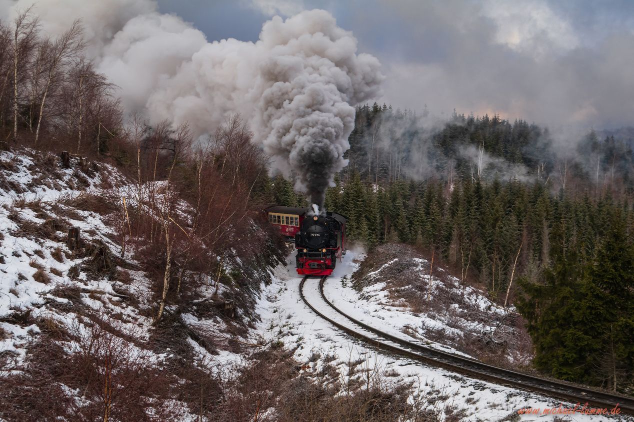 Ich bin ein großer Fan der Harzer Bahnen und versuche, wann immer es mir möglich ist, die Bahnen zu fotografieren. Die Ausstrahlung der Harzer Bahnen, aber auch gleichzeitig die anmutige Erscheinung faszinieren und begeistern mich immer wieder. Leider lag der Fokus im vergangene Jahr auf anderen Projekten, gerade die Drohne beschäftigte mich im Frühjahr sehr, weswegen ich kaum dazu gekommen bin, die Harzer Bahnen zu fotografieren.