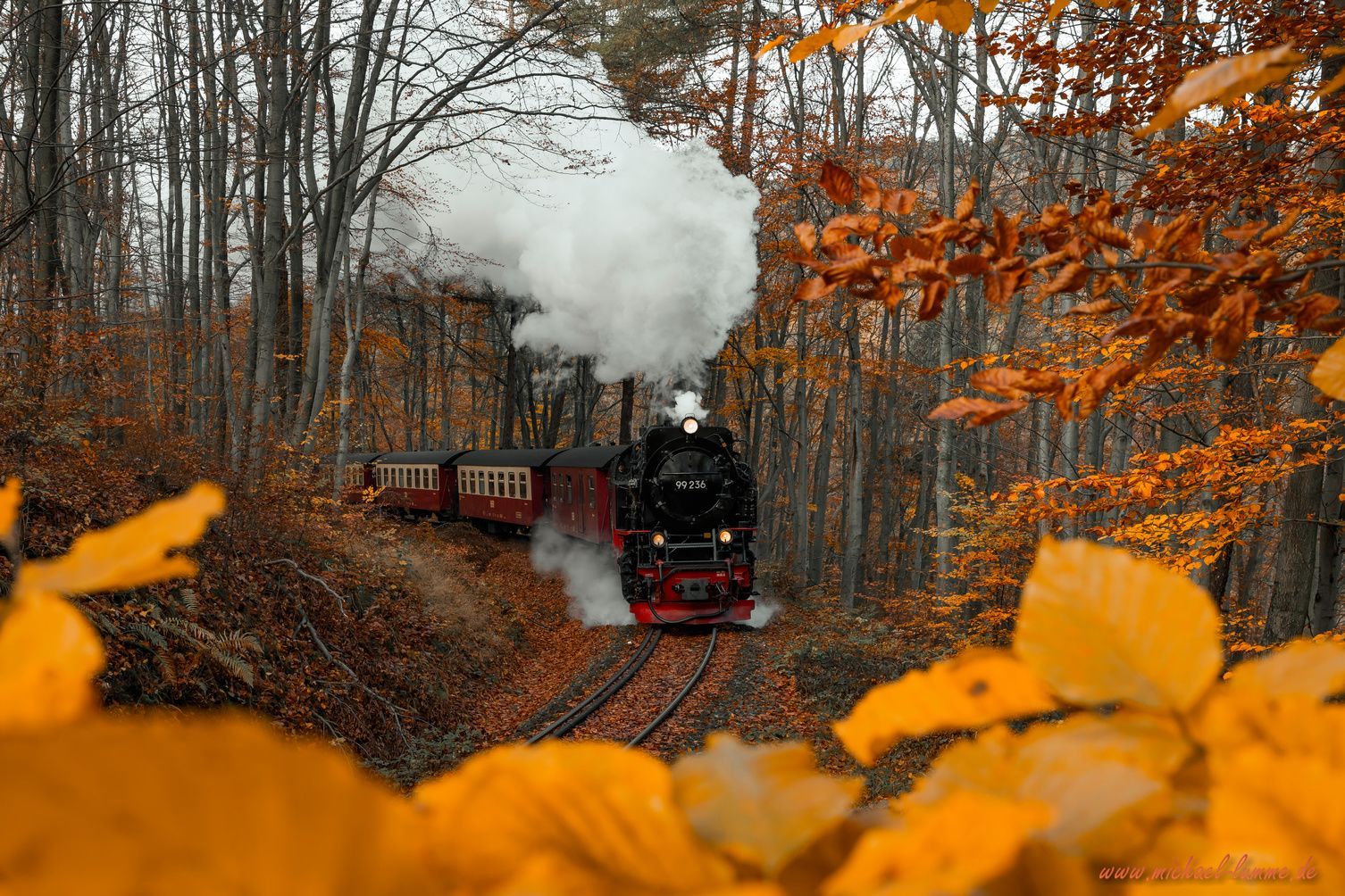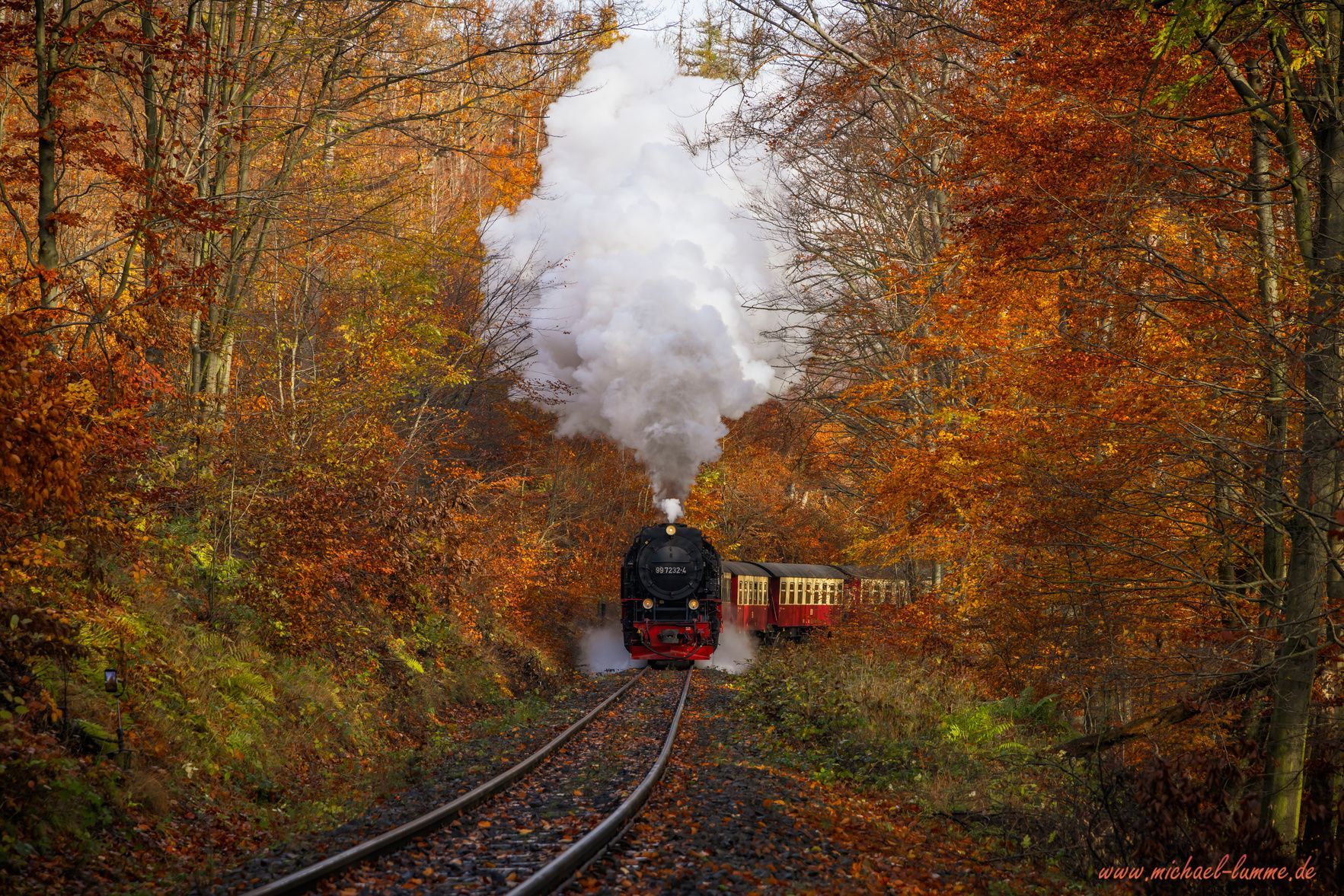 Die Brockenbahn in der Harzer Herbstlandschaft