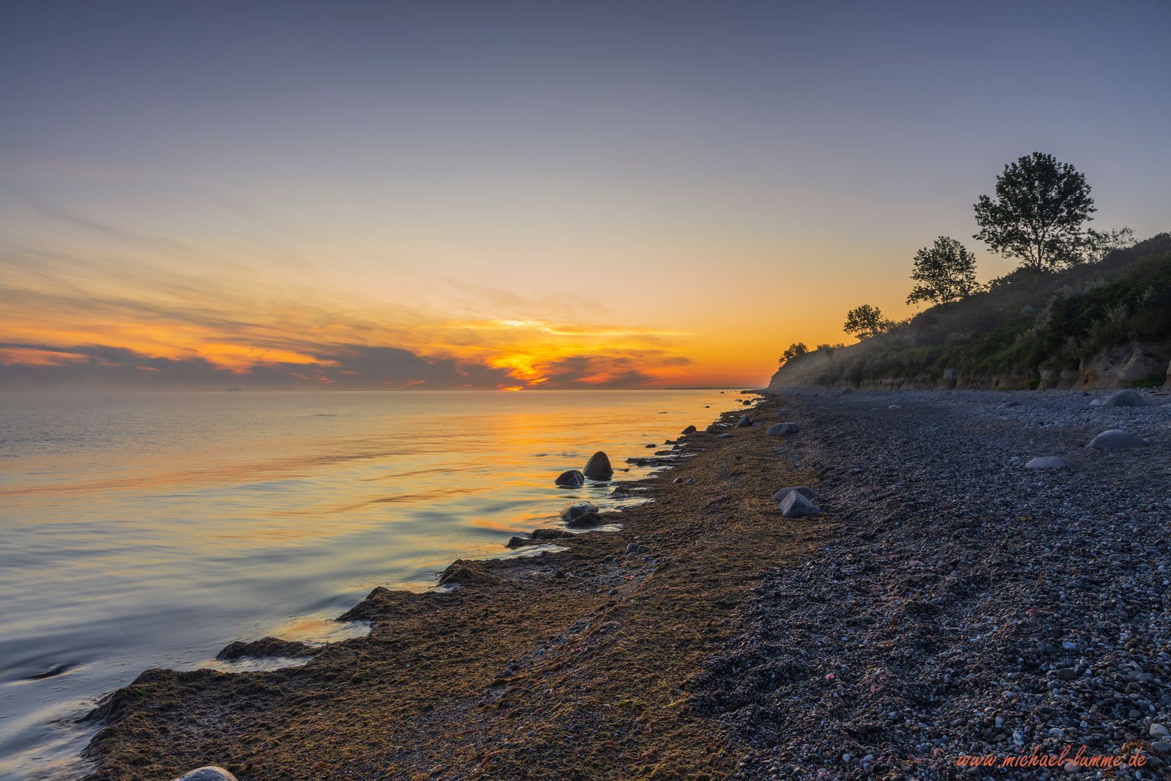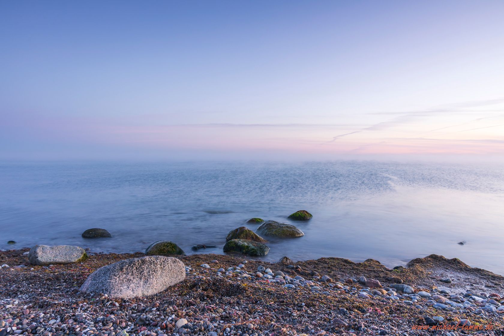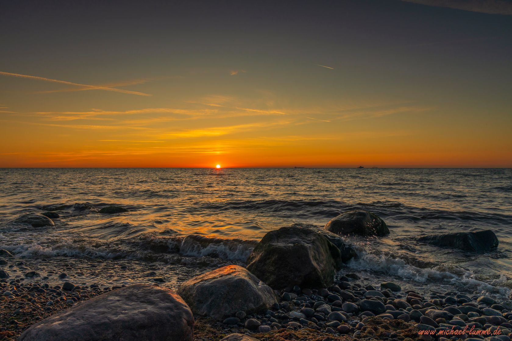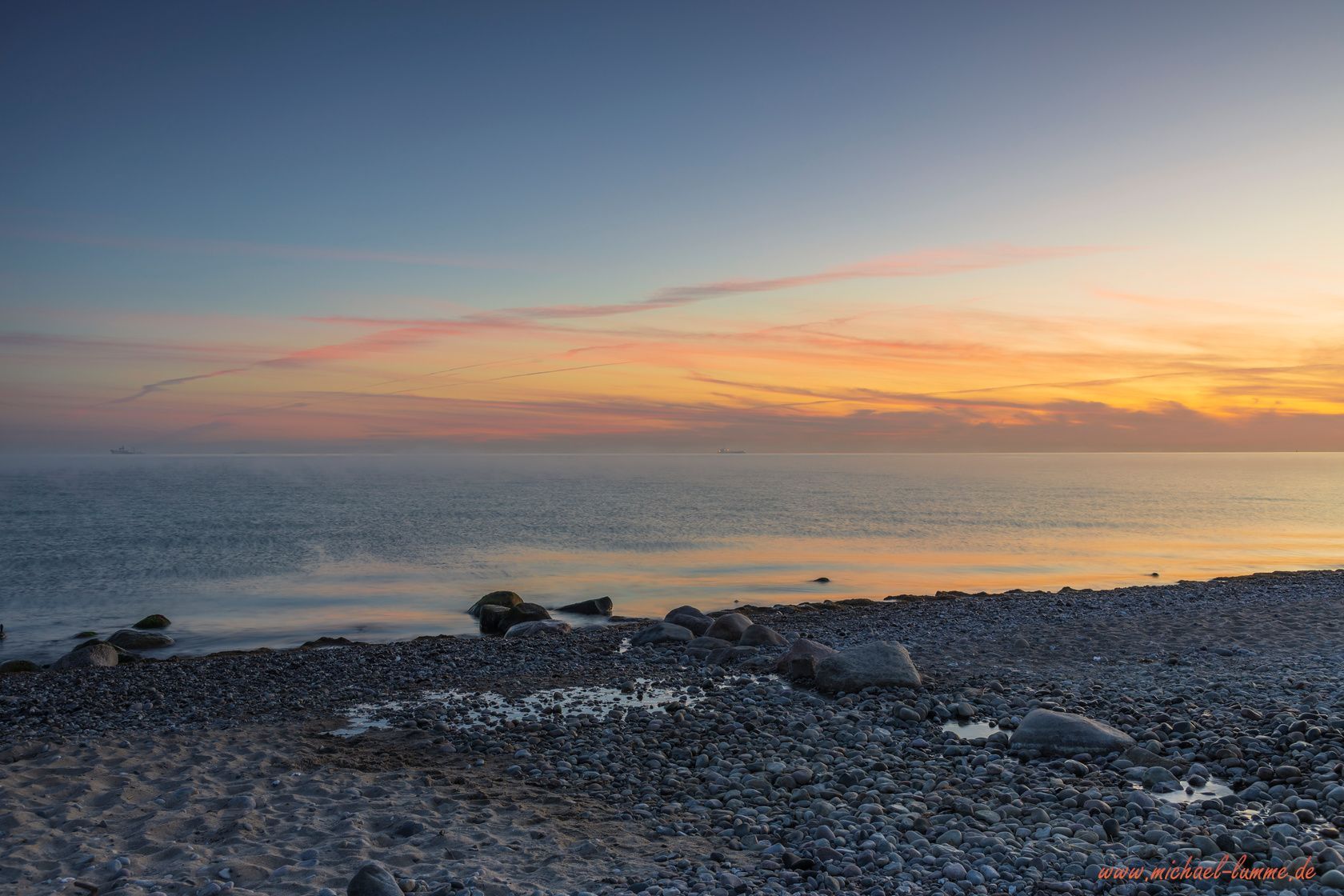 An meinen ersten Abend bin ich dann auch gleich zum Sonnenuntergang an den Strand von Elmenhorst. Erstens wozu man an der Ostsee, dann muss man auch an den Strand und zweitens wollte ich schauen wegen den Sonnenaufgang für den nächsten Tag. So endete mein erster Tag an der Ostsee mit einem wunderschönen Sonnenuntergang und mein nächster Tag begann mit einem einmaligen Sonnenaufgang, den ich so noch nicht erlebt habe. Denn zum Sonnenaufgang zog der Morgennebel vom Land auf das Meer hinaus und man schaute in ein weißes Nichts. Man hat nur in der Entfernung die Schiffe gehört, die aber im Nebel verschwunden sind. Das war eine besonders schöne und einmalige Stimmung an diesem Morgen.
