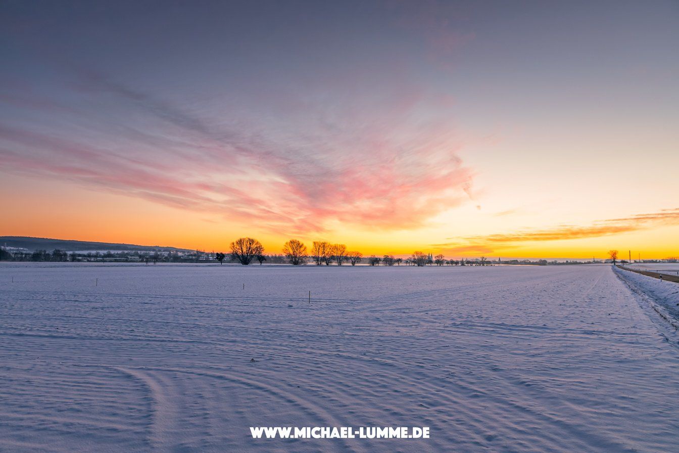 Trotz des stürmischen Wetters habe ich zum Sonnenaufgang am Mittwoch den 20. Januar einen kleinen Spaziergang zwischen Abbenrode und Stapelburg unternommen.