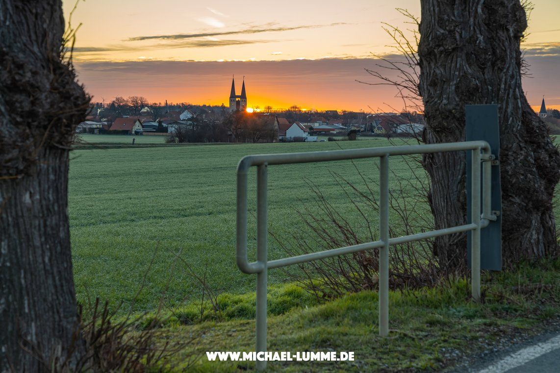 Am Dienstag den 16. März habe ich vor der Arbeit einen Abstecher nach Lüttgenrode unternommen. Nachdem ich am Freitag den Sonnenaufgang bei Lüttgenrode fotografieren wollte und von einem Regenschauer überrascht wurde, wollte ich an diesem Dienstag nochmal mein Glück probieren. Leider verhinderte eine dicke Wolkenschicht einen schönen Sonnenaufgang, obwohl sich die Wolken ein wenig im Morgenrot einfärbten. Im Anschluss habe ich noch einen kurzen Abstecher nach Osterwieck unternommen und den Blick durch ein Baumtor auf Osterwieck genossen. Auch wenn ich den Sonnenaufgang nicht erwischt habe, war es ein sehr schöner Morgen.