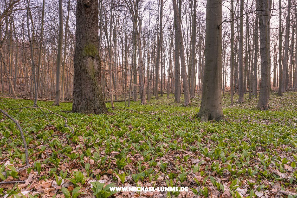 Am Mittwochabend des 24. März habe ich einen kleinen Spaziergang durch den Schimmerwald gemacht. Bei meinem Spaziergang konnte ich sehen, wie die Frühlingsboten des Schimmerwaldes der Bärlauch zu sprießen beginnt und die Laubdecke, die seit dem Herbst den Waldboden bedeckt, durchbricht. Als Hobbyfotograf habe ich natürlich meine Kamera immer dabei. Deswegen musste ich gleich auch ein paar Bilder von dem Bärlauch machen. Da mich Sonnenauf- und Sonnenuntergänge immer wieder faszinieren, habe ich versucht den Bärlauch mit der untergehenden Sonne zu fotografieren. Für mich gehört ein Besuch im Schimmerwald, gerade im Frühling mit dem Bärlauch zum Pflichtprogramm. Mich fasziniert es, wenn der Bärlauch wächst und dabei den Waldboden bedeckt und später, wenn die weißen Blüten einen wunderschönen Kontrast bilden. Das ist immer wieder wunderschön und zieht mich magisch an. Deswegen konnte ich es mir nicht nehmen lassen und musste schon im Schimmerwald vorbeischauen. Natürlich immer darauf bedacht, den Weg nicht zu verlassen, damit dabei keine Pflanze beschädigt wird.